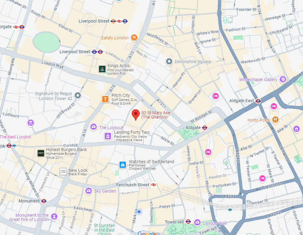Map: 30 St Mary Axe (The Gherkin) – London, EC3A 8BF